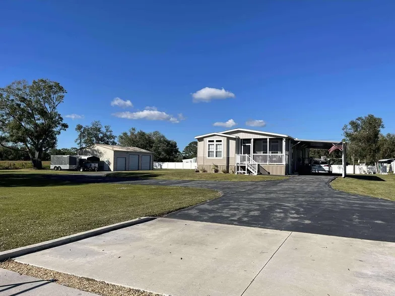 Piece of paradise on 1.174 acre at end of cul-de-sac! This pristine beauty and well manicured property stand less than 2 years old! 3 car carport can also fit an RV! 3 car detached garage with 9000 lb lift and air compressor that stays! Also has 110 & 220! Beautiful screened in Gazebo Electric in detached garage and both sheds! Riding lawn mower stays (not the 0 turn)Privacy fence along the back and fence all the way around the property with electric entrance gate. Driveway up to house and around to detached garage. Home offers 3/2 with beautiful open concept, cathedral ceiling with recessed lighting, walk in pantry, hurricane impact windows and extra Hurricane protectors. Beautiful master suite! This house was not spared and has been upgraded beautifully!