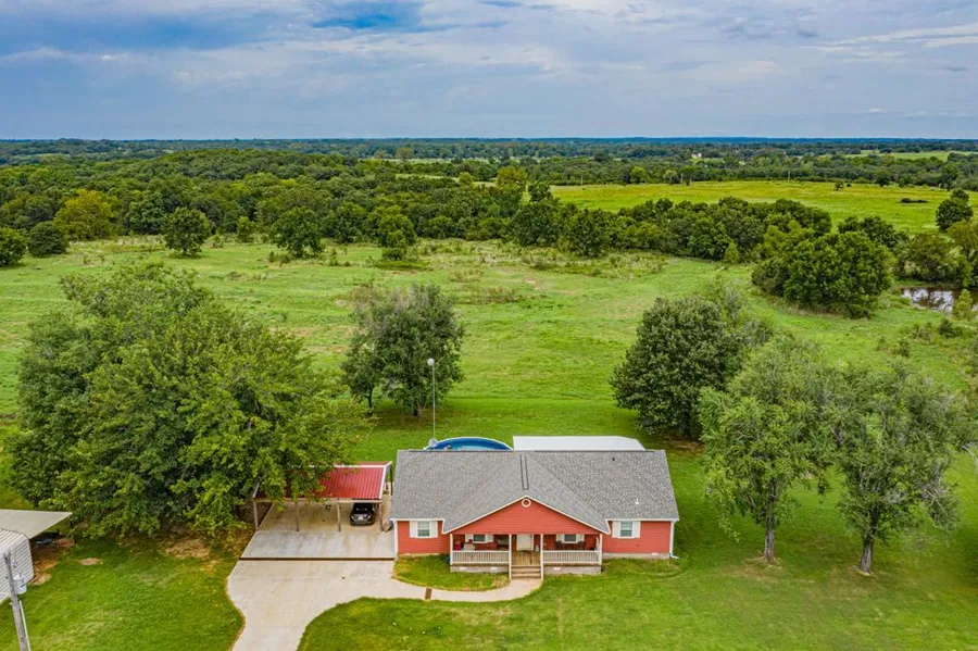 Don't miss this quaint country home on 59 +/- acres located in Okfuskee County! The 1,920 square foot, 4 bedroom, 2 bath home was just built in 2011 and is a must see! It boasts a covered back deck and porch that is absolutely perfect for entertaining guests. There is an amazing view from there across the acreage, with a captivating scene of the pond and mature pecan trees. The property also hosts an above ground pool and a 20'x30' covered parking area. There is a 20'x36' shop building with a concrete floor and a 20 foot lean-to off the back.