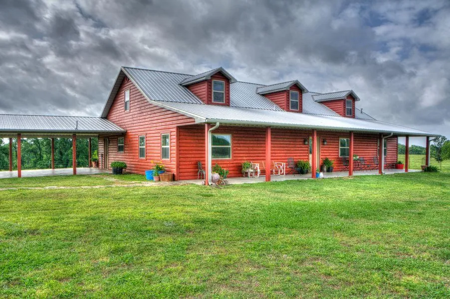 The ranch home offers over 2,800 sqft of living space with an open layout and 2 porches for both the sunrise & sunset! The home has 4 bedrooms and 2.5 bathrooms. A few of the house amenities include granite counter tops, wood burning fireplace, rural water, jacuzzi tub, mudroom and a bonus room upstairs. There is a storm shelter, mudroom and 2 truck carport attached to the house.