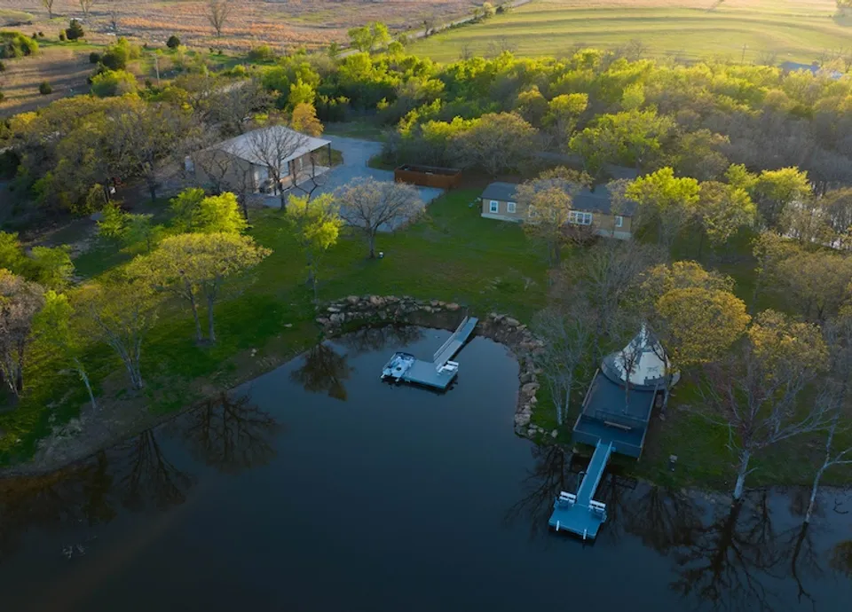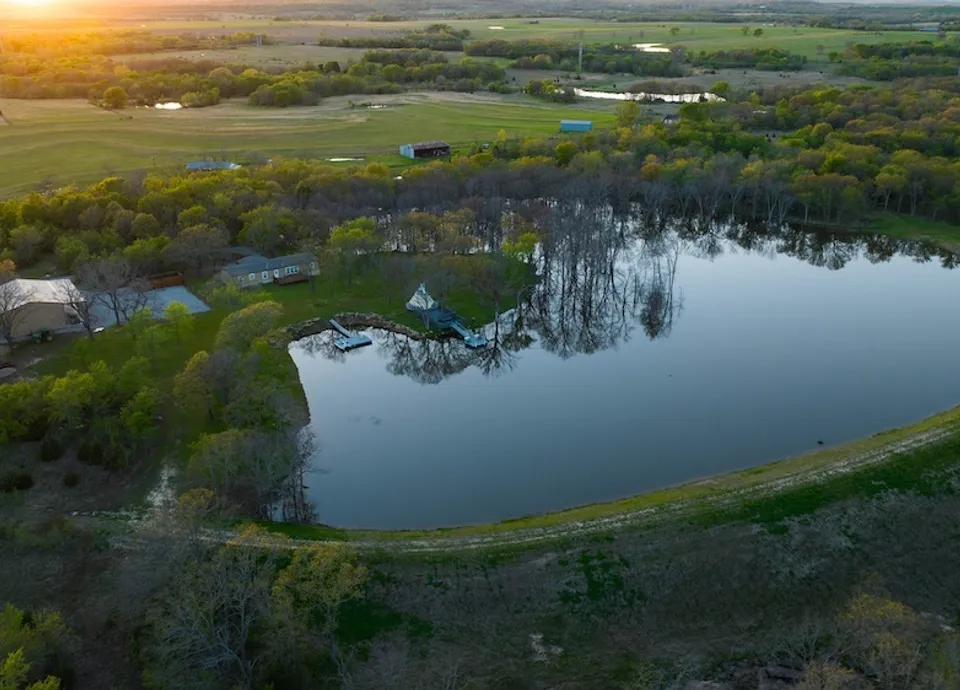 The lake also includes two aluminum docks and an upper deck perfect for grilling or relaxing, located near an authentic Native American teepee—a unique and peaceful space for storytelling or gatherings. The ranch includes a comfortable 4-bed, 2-bath home, and a 40x60 insulated shop with 16-foot ceilings, oversized doors, MacroAir fans, a walk-in cooler, and high-pressure washer. A large generator with a 1,000-gallon propane tank ensures uninterrupted power, and a storm shelter adds peace of mind.