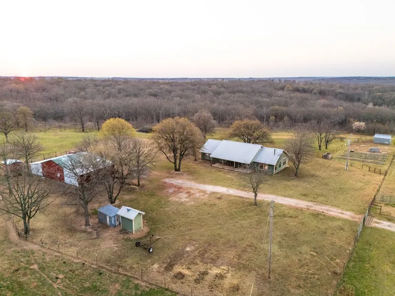 Welcome to the Ridgeview Ranch, a pristine 554.7 +/- acre property in Okfuskee County, Oklahoma! This ranch offers the perfect combination of modern comfort and rural living. When you enter the property off of the county road, you will notice the well maintained mile driveway that leads you to the cozy 1,820 sq. ft. home featuring 3 bedrooms and 2 full baths. The warm and comfortable feel would make this a great place to call home or enjoy as a weekend getaway. Also on the ranch is a very nice guest cabin with its own kitchen and bathroom offering a welcoming place for friends and family to stay. For those with a passion for ranching or farming, the property is equipped with a spacious barn for storing equipment, hay, or livestock. An additional covered area provides extra storage or shelter, making it perfect for various uses. The arena outside of the barn is ideal for training or work...