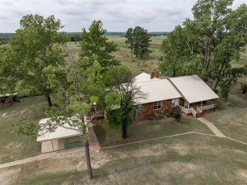 . 17.98 acres m/l with 3 bedroom/2 bath move-in ready country home tucked in among towering pine trees and other mature trees. This property offers a very peaceful setting while only being approximately 1/2 mile from the paved Fulsom road. The home offers a lot of unique character with rustic charm. The spacious kitchen provides abundant cabinetry and a lot of countertop space. The living room/sunroom offers a wood burning fireplace. The sunroom is a definite highlight-lined with large windows flooding the space with natural light and provide a stunning view that brings the outdoors in. The house just had new flooring installed and fresh interior paint completed. The property is well-equipped for a variety of uses-whether you're dreaming of a homestead, hobby farm, recreational retreat, or potential home business. It features a storm cellar, several outbuildings including 40x60 insulated shop with mini-split HVAC units and a propane/natural gas Cummins 200 amp generator, greenhouse, fencing for security, and a partial large pond. The acreage is perfect for livestock with open pasture with some mature trees with pond access. The main shop building could be used for projects, storage, or business. Several other outbuildings also offer extra storage. The home is supplied by rural water however a working water well is also located on the property and East Central Electric. The property is also provided with Ecolink fiber internet for modern connectivity. Centrally located between Tulsa and Oklahoma City-approximately 1 hour to either. Easy access to Interstate 40.