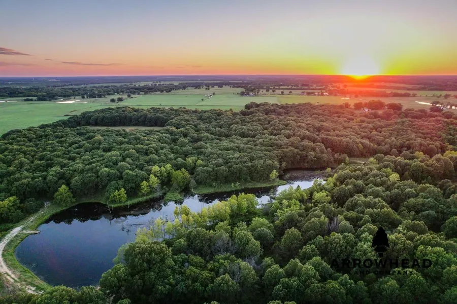 Located within Okfuskee County, Oklahoma, lies a captivating 100 +/- acre property offering an unparalleled haven for outdoors. The centerpiece of this natural paradise is the well crafted rustic cabin, presented with a spacious 30 x 50 layout, complete with a 30 x 30 living area. Elegantly furnished to evoke an inviting feel, the residence accommodates family and friends with three distinct bunk-bed arrangements, complemented by a full bathroom. The property's crown jewel is a massive pond, strategically equipped with a water control system, providing both recreation and functionality. Stocked with f1 bass and a haven for waterfowl, this feature couldn’t be anymore attractive to outdoorsmen. Adjacent to the pond is a sprawling mowed field that could be transformed into the ultimate food plot. For the avid hunter, a well-placed banks blind stands ready, promising an optimal vantage point...