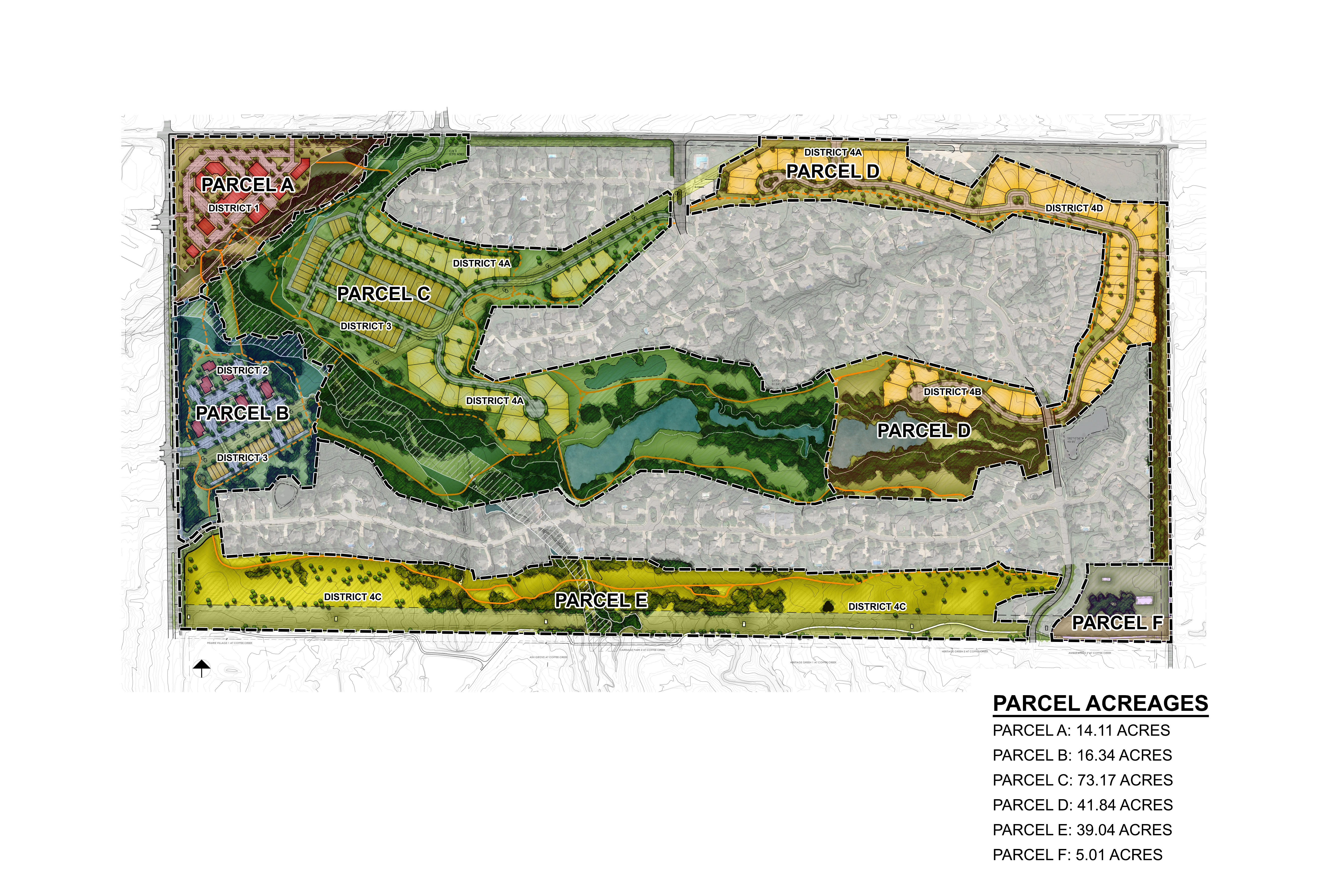The PUD breaks the 189+/- acre site into four districts: