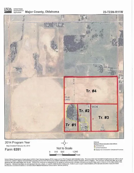 This 160 +/- acres is located 25 miles west of Enid on US 412 (5 miles west of the Ringwood Jct. - US 412/SH 58), then 4 miles north. This is a unique opportunity to purchase 20, 40, 80 &/or 160 +/- acres with a very nice & well cared for brick home, detached garage, an approx. 40 x 60 insulated shop building with concrete floor & electricity, an approx. 45 x 150 equipment/hay pole barn w/ 20 side walls, a nice set of corrals, 3 water wells, productive cropland and plenty of trees & grass to provide livestock shelter, wildlife habitat and hunting potential, if desired. The home offers: approx. 1998 square feet of living area * 3 bedrooms * 2 baths * lg. living room with vaulted ceilings & a cozy wood burning stove * big kitchen with a Bosch eye level convection/conventional oven, Bosch electric cook top, built-in microwave & built-in dishwasher, plenty of nice cabinet & counter space & breakfast bar * nice size separate utility * enclosed porch * central heat & air * & in-ground pool; The Farm: According to the Major Co. F.S.A. there are 88.38 acres of cropland with a 18.9 acre wheat base and a 30 bushel per acre yield; & a 22.5 ac. oats base w/a 37 bushel per acre yield. Principle soil types of the cropland include Waldeck loam, Class II; & Meno & Daycreek loamy fine sands, both Class III. This land is joined by an irrigated quarter on the west in addition to other irrigated quarters nearby. The balance of the land is in moderate to heavy timber & grass. Be sure to take a look! 2013 Taxes for Entirety: were approx. $1,722.00 without homestead exemption. Legal Description for Entirety: SE/4 of Sec. 23, Twp. 23 N., R 11 W.I.M. Major Co., OK Tract #1 (20 +/- Acres w/ Hunting Potential): W/2 SW/4 SE/4; Tract #2 (Home, Farm Buildings & 20 +/- Acres): E/2 SW/4 SE/4; Tract #3 (40 +/- Acres Cropland): SE/4 SE/4; Tract #4 (80 +/- Acres of Productive Cropland): N/2 SE/4 Note: East/West Fence is not situated on the section line. Windmill & water well will sell with Tract #4 Order of Auction: Tracts will be offered separately and in combinations to suit buyers. Auction company expressly reserves the right to re-open bidding on each tract until such time as all biding has ceased. Possession of Home & Yard will to be given upon payment in full of the purchase price and transfer of title, at closing; Possession of Shop Building, Pole Barn, Timber & Grassland will be given upon payment in full of the purchase price and transfer of title, at closing, or July 1, 2014, whichever is later; Possession of Cropland will be given upon payment in full of the purchase price & transfer of title, at closing, subject to completion of harvest of the presently growing 2013-2014 wheat crop or July 1, 2014, whichever is later. Minerals: Do not sell. Crop: Does not sell. Taxes: The 2014 taxes will be prorated to the day of closing. Terms: 10% of the purchase price is to be placed in escrow the day of the auction with the balance being due upon delivery of merchantable title. All information is taken from sources believed to be reliable; however, no guarantee is made by the auction company or its employer. Buyers should satisfy themselves as to size, condition, acreage, crop base, etc. prior to auction day. Announcements made the day of the auction take precedence. Visit wigginsauctioneers for full details, pictures, & aerial photo.