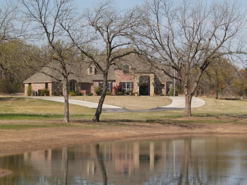 Don't miss out on the chance to own one of the nicest homes in East OK County. Gorgeous 6 bedroom home with study and games room. Beautiful kitchen with all the extras including granite countertops, stainless steel appliances, range nook with pot filler and so much more. Expansive patio, outdoor living area with fireplace and kitchen. Swim in your pristine heated salt water pool. Downstairs Master suite has private living room with access to patio. 7.8 acres are partially wooded and include waterfront access to large pond. Set back from road in private gated area. Come home to Paradise!