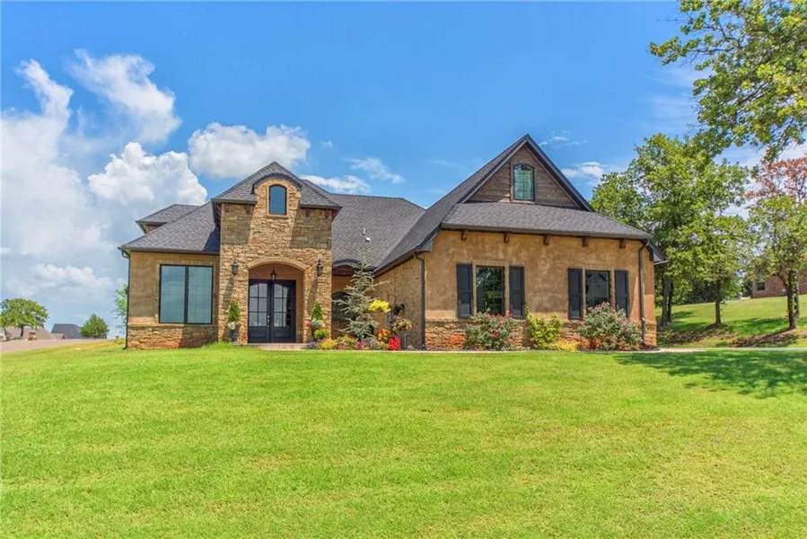 This stunning home on 1 acre in Schwartz/Carl Albert Schools is the builders personal home and is absolutely loaded with high end features. Don't miss out on an extremely rare opportunity to buy a completed home in the highly sought after community of Whitney Ridge. This home features include: 4 bedrooms, 3 full & 1 half bath, bonus room, study, built in 2015, 3,178 sq. ft, farmhouse touches, great flow, executive study located off of the entry, high, vaulted ceilings with wood beams, pallet wood accents, massive island, granite countertops, indoor designer laundry room, storm shelter, and tons more. Located conveniently close to highway access, Tinker AFB, Boeing, and Downtown OKC. Call today for a personal tour.