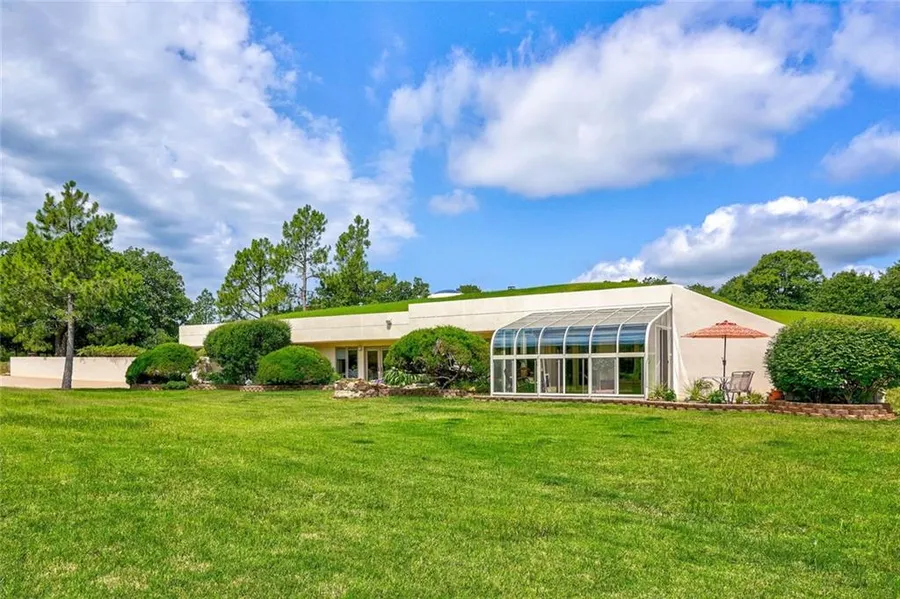 AMAZING property packed full of amenities and an incredible EARTH SHELTERED home. 48.8 Acre, partially wooded lot with a 2-acre stocked pond, a 900 gallon garden and aquatic fish pond, a temperature controlled greenhouse with a 10x60 lap pool, and a 2,000 ft shop with electricity. The contemporary styled home was built into the ground using steel-reinforced concrete, creating an extremely energy efficient home that is also built to protect from Tornadoes and Earthquakes. The home is total electric which pulls half of its power from the on site, 10,000 watt wind generator. The open concept floorpan with beautiful natural lighting makes this a class above any earth sheltered home you may have seen in the past. The master bedroom opens directly to the Four Seasons Sunroom featuring a textured patio with a sunken spa. Enter the property through any of the 3 gated entrances. All just minutes ...
