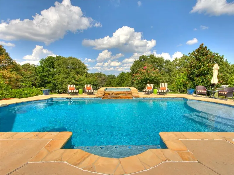 Live a life of relaxed elegance in this fabulous custom-built home, where most of the living space is on the main floor & large picture windows line the rear exterior maximizing the views to the resort style backyard. A large sparkling pool with beach entry, spa & waterfall are the focal point. Outdoor living spaces & pool bath complete the experience. Inside, is a restoration hardware style kitchen with an enormous island anchoring the large open concept kitchen/living area with cathedral ceiling and a floor-to-ceiling rock masonry fireplace that warms the family room. A barrel shaped ceiling joins the front entry to the formal living & draws the eye to yet another gorgeous view. The master suite has a cathedral ceiling, double vanities & his & hers walk-in closets. All bedrooms are down, each with its own full-size bath. The 5th bedroom can alternatively serve as playroom or theater room. A gameroom, exercise room & full bath are up. Laundry w/ 2nd fridge. Large mud room. Safe Room