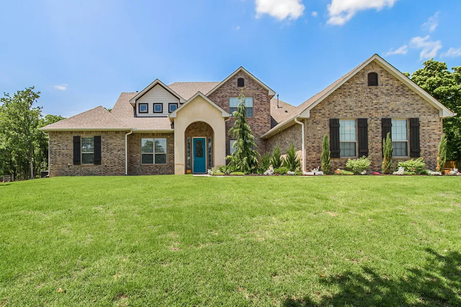 Nestled among the rolling hills in the sought after Asheville community in Choctaw is where you will find this beautiful home. Sitting on almost an acre, curb appeal is front and center with lush landscaping, numerous trees, and a commanding stone entrance.