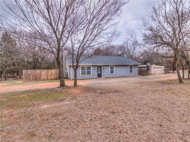 Location, Location, Location! Two Beautifully Wooded Acres in Edmond East of I-35 close to Lake Arcadia! Private lot with tons of trees, including fruit trees. Huge 38'x22' Shop with two garage lifts plus a 38'x12' metal covering. In 2012 308 sq ft was added to property, permit pulled. Updated kitchen with granite and stainless steel appliances. Fireplace in living can heat entire home. Master bedroom has en suite bath. Laundry room is inside of home. Huge back deck off of kitchen that leads to above ground pool. In-ground storm shelter. On private well with septic tank. Windows at front of property replaced in 2012 and are low E. Attic has double lay of insulation, blown eco friendly and radiant barrier. Avg utility bills are $125/month. Property is perfect for Cash or possible Conventional Loan Buyer, won't go FHA or VA, and for new owner to finish updates and make it their Own! Welcom...