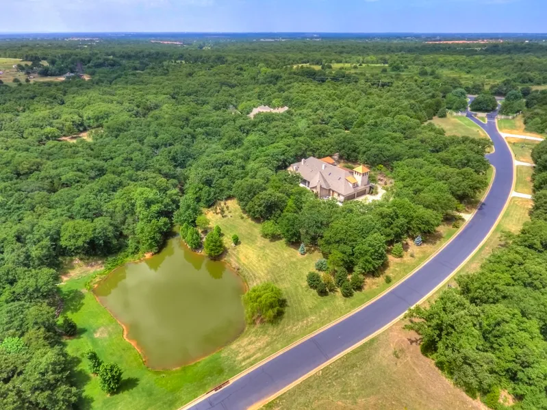 Sitting on 3.82 acres of lush mixed woods and cleared acreage including a scenic pond, this residence is both impressive and inviting, blending modern amenities and conveniences with classic Santa Fe style. The home is designed for entertaining with soaring ceilings, open floor plan, every dedicated room you would desire and an oversized covered patio designed as an extension of your living space with drop down sun shades. The living room boasts vaulted ceilings with details quality crafted. The roomy primary bedroom has its own fireplace as well as spa inspired bath with open shower looking out through large windows onto wooded acreage. Each guest room is a continuation of the same craftsmanship and comfort with one ensuite downstairs. On the second floor, youll be greeted with an expansive bonus room including a kitchen and bar. Perfect for anyone, this home is ideally positioned and suitable to enjoy a private luxury getaway. Truly Santa Fe style living in desirable Edmond.