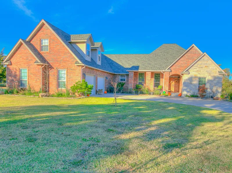 This newly painted home in a nice warm color is ready for you to make this your home for the holidays. Granite Countertops in Kitchen and lots of cabinets and countertop space. This home is on a little over an acre. Living room features dark wood tile flooring and wood burning forced air fireplace. A large size master bedroom with a whirlpool tub, separate shower, double sinks, huge walk-in closet with a built-in chest. 2nd and 3rd bedrooms with a shared bathroom, 4th bedroom with full bathroom. Upstairs Bonus rooms which could also be used as a 5th bedroom. Climate controlled workshop in the oversized garage. Large storm shelter also in the garage. New chain linked fence, fruit trees, fully enclosed garden in the backyard, a Playground and newly painted Clubhouse.