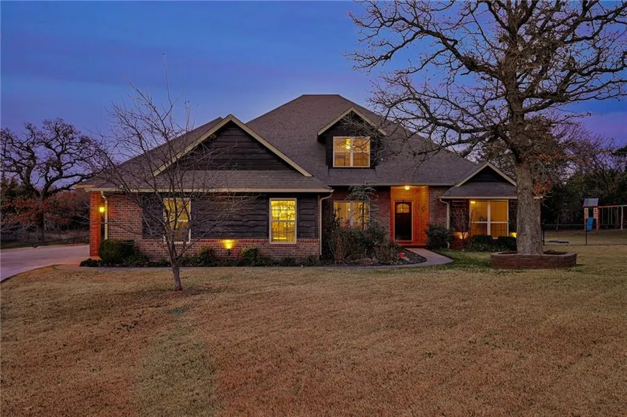 Located in the exclusive gated community of Stone Creek Canyon, this 1.33ac tree-lined beauty is ready to be called HOME! Nestled in a peaceful cul-de-sac street, the fully fenced backyard offers a private spring-fed stocked pond, fire pit entertainment area, & shed with electricity. The immaculate interior boasts an open floor plan, 4 large bedrooms, 4 full bathrooms, study + a huge bonus room including a full bath. The picture windows in the living room showcase the beautiful backyard as soon as you walk through the front door. The kitchen offers updated white cabinets, granite countertops, SS appliances, a breakfast bar & a spacious pantry. The bedrooms are split with the primary suite opposite the secondary bedrooms. A few features include a circle drive with extra/trailer parking, private well water & water softener, french drain system, sprinkler system, large floored attic storage, storm shelter & exterior generator hookup. Edmond (North) Schools & Logan County - A must see!!