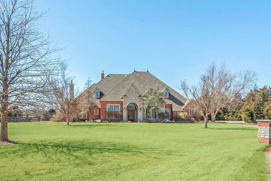 Beautiful traditional style home sitting on four acres in idyllic Quail Ridge II. Blending sophistication and functionality with a large open floor plan and multiple living spaces. Enjoy the chef's kitchen with JennAir appliances and a Subzero fridge. The main living area offers a large fireplace and beautiful built-ins, a formal dining room and an informal breakfast nook! Offering four bedrooms, a study with a fireplace, an indoor 12x12 safe room, an upstairs theatre and game room with a full kitchen! Just past the theatre, you'll find a secret door leading to a stairway that takes you to a private guest suite. The backyard is an entertainer's dream- a sprawling covered porch with a summer kitchen and a saltwater pool, fire pit, separately fenced portion of yard for the chickens, duckies, and a climate-controlled dog house. Come make this fantastic property "home!"