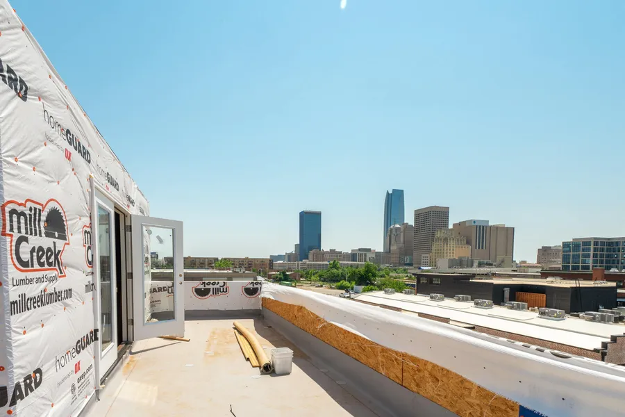 Robert Square, a community of historically inspired urban homes unlike anything OKC has ever seen. Each home has its own unique facade and offers both natural light and privacy throughout. The open dining to living space is lit from towering front windows and double doors leading you to the completely private backyard. The Kitchen is a rare treat of extraordinary design and convenience with white oak cabinets, a 48" Heritage series Bertazzoni range and a combination of soapstone and marble countertops. Upstairs you'll find the spacious primary suite with a juliet balcony overlooking the backyard and your 9.5 x 19.5 swimming pool(water feature included). Two additional bedrooms and a bathroom complete the front wing of the upstairs but a skybridge with towering 5x10 windows will lead you to the guest suite in a private upstairs wing. Combining a forward-thinking modern design with the warmth of natural stones and wood throughout. Welcome to Robert Square.