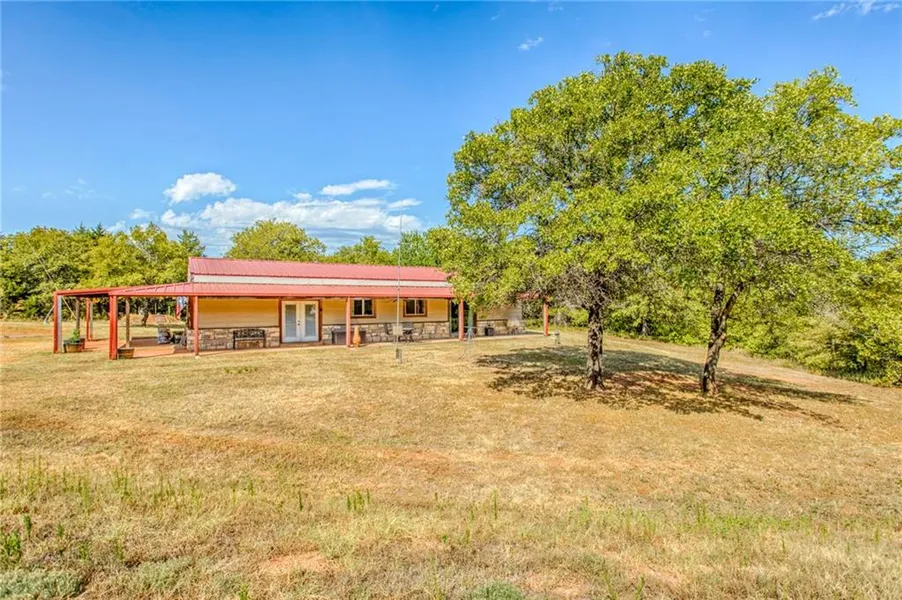 This home has a rustic flair with an open floor plan offering 2 bedroom 1 bathroom nestled on 10 wooded acres. Property fronts a paved road and has gravel driveway. The antique tub and vintage doors and knobs give this home timeless character. Features stained and HEATED concrete floors throughout the home, with a separate propane water heater just for the floors. Master has 3 closets all cedar lined, large pantry with enough room for a deep freeze, utility room has ample storage space for all mechanical equipment. Property has a 17x20 shop with concrete floor, overhead door, walk through door, electricity and window unit that will stay. Additional features included huge covered porch, 2 car carport, large storm shelter, fenced dog run, fenced 16x34 garden area, chicken coop, metal construction and spray foam insulation. This property has an abundance of wildlife to enjoy.