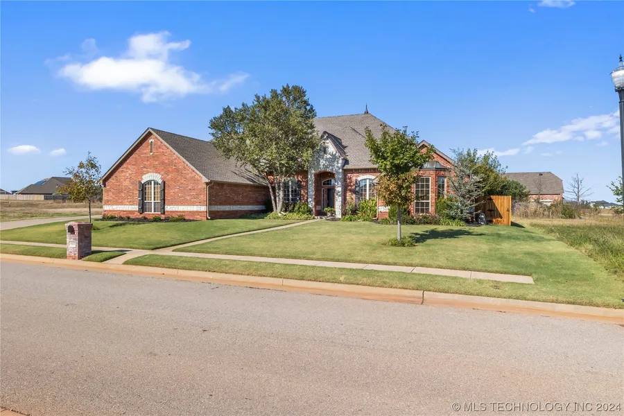 Fantastic one-story home with many updates new roof, new copper roof over bay window, copper finials, gutters, window screens, vents, garage door, carpet, and paint! Well-appointed home with formal dining room, living room, private office with bookcases, and in-law suite with sitting area. 4 bedrooms. 2 secondary bedrooms with walk in closet share a pullman bath. Master suite with sitting room, master bathroom with soaking tub, walk in closet, separate vanities, huge walk-in closet. Gourmet kitchen with large island with prepping sink. Desk area, gas cook top with pot filler. Abundance of cabinets and counter-top space. Breakfast nook and eating bar. Family room with fireplace. HUGE utility room with sink and storage. In-law suite with bedroom, walk in closet, private bathroom with shower only and sitting area. There is also a private patio off of the in-law suite. Theater room with projector and all equipment stays. Bonus room could be a Craft room, pool table room, or gaming room with wet bar with fridge. 4 car garage. 2/2 separate entrances. Private patio off of kitchen with a built-in outdoor kitchen area. Perfect for entertaining or late-night dining. Generator fixed and stays. This home has it all. Ready for a new owner!
