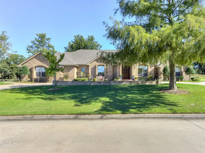 Gorgeous brick home in Choctaw School District! This 3-bedroom, 2.1-bath residence offers 2,520 sq ft of comfortable living space in a private, gated neighborhood. The open floor plan and large windows infuse the home with natural light, creating a warm and inviting atmosphere that’s perfect for hosting! The circular driveway out front adds an element of grandeur and plenty of easy parking for guests! The kitchen features a double oven, bar seating, adorable window seat, spacious pantry, and under-cabinet lighting. The living room showcases a cozy fireplace with a beautifully detailed mantle. The generously sized primary bedroom has a lovely en-suite bathroom that boasts a double vanity, a soothing soaking tub, and a walk-in closet. The two additional bedrooms share a jack & jill bathroom for added convenience. Laundry is made easy in the large utility room, complete with a sink and abundant storage and counter space. Step outside to the covered back patio and the expansive backyard, complete with lovely landscaping, a calming coy pond, and a gazebo for outdoor enjoyment. This home also has a Generac generator, keeping your home powered during those Oklahoma storms. Don't miss the opportunity to make this charming residence your forever home!