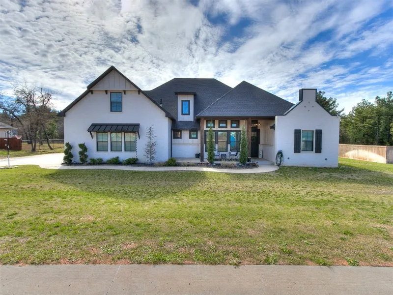 Welcome to your dream home! This stunning property boasts luxury living with a spacious 4 bedroom, 2 and a half bath layout. Situated on a generous half-acre lot, this residence offers both space and tranquility. Step inside to discover a modern marvel: a large, contemporary kitchen complete with a sprawling island, perfect for entertaining guests or preparing meals. Your culinary adventures are further enhanced by an oversized walk-in pantry and a convenient wine refrigerator and bar area. The seamless flow between the kitchen and living room creates an inviting atmosphere for gatherings and everyday relaxation. Retreat to the expansive master bedroom, featuring a massive walk-in closet and an indulgent soaking tub in the ensuite bath. Two additional bedrooms on the main floor offer generous closet space and share a well-appointed bathroom, while the fourth bedroom, with its large windows and abundant natural light, presents versatility as an office or guest room. Upstairs, a flex space awaits your creative touch - whether you envision a home office, playroom, or fitness area, the possibilities are endless. Step outside to your own private oasis: a fenced backyard complete with a large covered porch and a wood-burning fireplace. Plus, enjoy peace of mind with extras like a storm shelter, sprinkler system, tankless hot water heater, and water softener. As an added bonus, this property includes the playground in the backyard, ensuring endless fun for the whole family. Don't miss your chance to call this exceptional residence home - schedule your showing today!