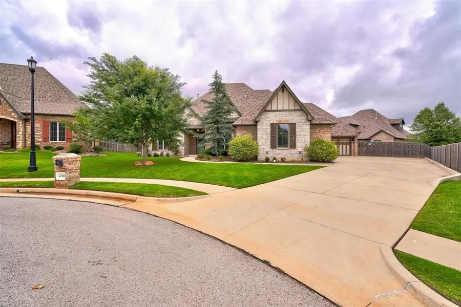 Experience modern luxury with this stunning Edmond home, designed for today's contemporary family! This exceptional property was originally built for the builder (a well respected custom builder) and includes a lot of upgrades! The home features a gourmet kitchen complete with a double island, two sinks, double ovens, a built in microwave, stunning cabinet design with plenty of storage, a convenient desk/drop zone area in the breakfast nook, and a spacious walk-in pantry. You'll also love the convenience of a wine/coffee bar with a beverage fridge.