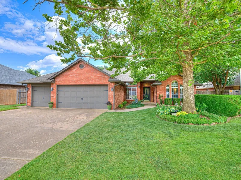 METICULOUSLY MAINTAINED in FANTASTIC LOCATION - HAWKS LANDING of EDMOND! So many features to love - Bamboo wood flooring and tile throughout (the only carpet is in the Primary Bedroom). Enhanced wood trim package with crown molding, built-ins & tons of storage. NEW garage doors & openers, NEW hot water tank, Storm Shelter in garage, Full gutters with leaf guards, Tuff Shed building on steel base. The KITCHEN features Granite counters, tumbled marble backsplash, stainless appliances, Bay window breakfast nook and a Breakfast bar overlooking living area. The Primary bedroom has a large ensuite bathroom with double vanity, whirlpool tub, separate shower & AUSTRALIAN walk-in closet. The STUDY/4th Bed has French doors and is connected to the primary suite making it an AWESOME nursery or study/den option. The spacious backyard has HUGE 29x11 covered patio, beautiful mature trees & landscaping and KOI POND WATER FEATURE! Hawks Landing is a lovely neighborhood with community pool, park and walking trails - Centrally located in Edmond close to Mitch Park, great shopping and restaurants. It is a short walk to both the elementary school and high school and just 2 miles to the middle school. See the virtual tour for interactive floor plan and call for full features list!