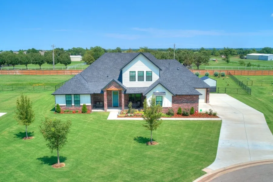 This unique floor plan features a 16ftx8ft FINISHED BUTLERS PANTRY with built-in cabinets, butcher block countertop, extra fridge/freezer spot, plugs for small appliances, granite composite sink, and access off the garage for easy grocery unloading and storage. The main Kitchen is open to the living room sharing a soaring vaulted ceiling with wood beams and tons of windows for a sun-drenched living/entertaining space. The KITCHEN also boasts granite countertops, large center island with breakfast bar, double ovens, upgraded commercial-style faucet with gooseneck sprayer handle, and granite composite undermount sink. The LIVING ROOM is centered on a cozy gas log fireplace with wrap-around wood mantle and stack stone facing. There is tile all through the main gallery and all traffic areas - the only carpet is in the secondary bedrooms. The oversized Primary suite has wood floors, spacious walk-in closet and deluxe ensuite bath with freestanding tub, walk-in shower and double vanities - each with plenty of personal space. The laundry room has a built-in desk station, tons of extra storage and connects from the Primary bedroom hall to the secondary bedroom hall so it is convenient to all closets! The bonus room upstairs could be a 4th bedroom or guest suite and has an adjacent full bath, large closet and wood-look tile. Outside you are sure to enjoy the sprawling 0.76 ACRE LOT with many relaxing yard features - Rocking chair front porch with custom porch railings, expanded back patio with PERGOLA, GRILL STATIONS, WATER FEATURE, STORAGE/GARDEN BUILDING, SLIDING PRIVACY/SHADE WALLS, and tons of yard space for gardening, pets, games and a sense of country living! OVERSIZED GARAGE with ABOVE GROUND STORM SHELTER has a walkway between the sections creating another half-car of space on both sides! PLUS - GENERAC HOME GENERATOR - FULL SET UP WITH AUTOMATIC TRANSFER SWITCH!!! (Incentive can go toward closing costs or price)