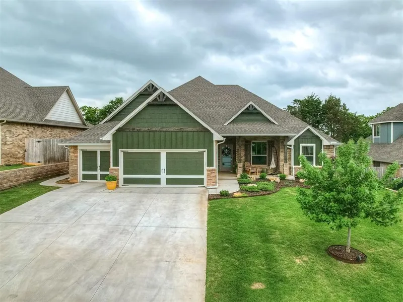 Located in the highly sought after Highgarden Addition, this home offers an ideal combination of luxury, practicality, & fantastic neighborhood amenities all within the Edmond School District. Just under 3,000 sq ft, this exquisite home sits on 1/4 of an acre and features 5 generously sized bedrooms, 3 full bathrooms, a flex room, 2 dining rooms, and a Study. It has an open concept floor plan and allows plenty of privacy for each area of the home. The living room features a gorgeous eye catching coffered style ceiling along with a centered fireplace that comes complete with a beautiful mantel. The kitchen features an 8ft island with seating, stainless appliances, a walk in pantry, and beautiful cabinetry all with gold accents. You will fall in love with the huge walk in closet located in the primary suite. It features built ins and connects to the oversized bathroom that features a ceramic tile walk in shower, a corner jetted tub, and his and her vanities. Upstairs you will discover a large flex space that could be used as a playroom, hobby space, movie room, whatever your heart desires. There are 2 bedrooms and 1 full bathroom located upstairs as well. You will certainly have fun entertaining on the oversized back patio that features a fireplace, a 10x10 concrete pad ready for a hot tub to be placed and hooked up (60 amp service has been ran), and additional concrete ready for your grill to have its own spot! The backyard has full privacy fencing. Some additional highlights to mention in this amazing home are window coverings throughout, instant hot water, upgraded door handles throughout, a 5 burner stove top, mud bench, an oversized 3 car garage that includes a storm shelter, and has a whole home air filtration system. Don't miss this wonderful opportunity to purchase a home with instant equity! Call for additional details and to set up your private showing today!