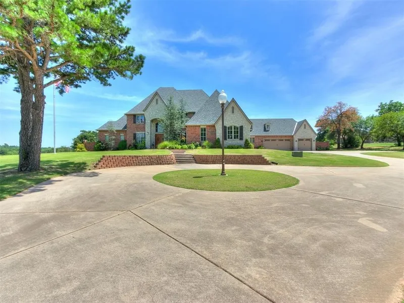Lavish, private Choctaw estate! Gated entry, situated on 7.55 acres(mol). Short commute to downtown OKC & surrounding areas. Impressive grand entry! This amazing estate also includes guest quarters/pool house fully contained with 2 bedrooms, living room, kitchenette area, utility room and bathroom. The main house features 4 spacious bedrooms, 4 bathrooms, 3 living areas plus a study & oversized 6 car garage. The spacious main living room features raised beamed ceilings, general living room seating space plus additional conversational seating space, 2 fireplaces, hand-scraped hardwood flooring & more. The open floorplan includes a cook's dream kitchen featuring loads of cabinetry, beautiful granite counter tops, 2 islands, 6 burner stove top with a griddle, pot filler, double ovens, sub-zero refrigerator, huge pantry, breakfast bar, butlers prep area w/ice machine, etc. The master suite will easily accommodate king-sized furniture and features a fireplace, beautiful private bath area with loads of cabinetry and storage space, double vanities, whirlpool tub, walk-in shower, huge 3-tiered walk-in closet and more. Other features include a very nice private study with built-in book cases and desk space, a large formal dining room, a large inside utility room with great storage & counter space plus a sink. There is also an additional bedroom with a private bathroom. Other features include a true hidden basement area plus a saferoom. Upstairs features a wonderful large theatre room, plus a bonus room with a built-in refreshment area & balcony access. There are also 2 additional bedrooms plus 2 bathrooms. The exterior is a paradise of it's own. Features include two spacious back covered patio areas, an outdoor kitchen, a fireplace and an amazing inground pool with a rock waterfall, slide, gratto & special lighting. Another bonus is the oversized 6 car garage delivering over 1,800 square feet of attached garage space.