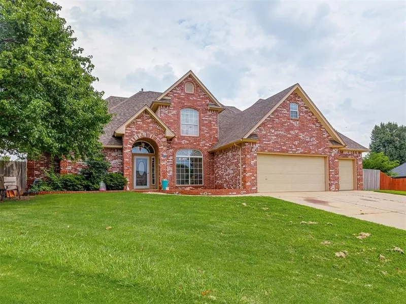 Conveniently located in north OKC close to the turnpike this Deer Creek School home boasts many extras including a huge back yard. There are beautiful inlaid wood floors in the entry, kitchen, hall & foyer and the eat-in kitchen has loads of cabinets with an island. Built-in bookshelves in living room with wood mantle fireplace. Master bedroom has vaulted ceilings and master bath has walk-in closet. Upstairs guest room with balcony and the other with own full bath. Guest bath w/ double sinks. Newly painted interior & granite countertops.