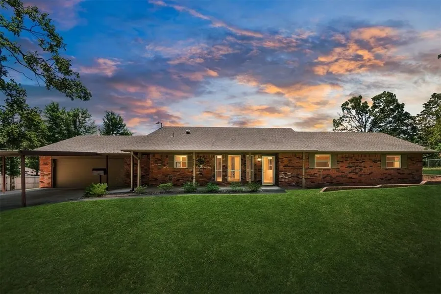 True, peaceful, country living, in a quiet, well established neighborhood of acreage homes, a few minutes west of Kickapoo Turnpike or 5 minutes N of I-40/Peebly Rd exit. A black bear has been hand carved from a tree stump to greet you in the drive up to the home. The 24x48 insulated shop is perfect for hobbies or a business with front and rear overhead doors, cabinets, heat & air, and plumbing for a bathroom. Above ground storm shelter in garage, kitchen has new dishwasher and double ovens, stainless steel fridge, solar tube lighting, quartz counters & abundant cabinets. Upgraded shower and tub in bathrooms. Oversized laundry room with sink and extra cabinet space, dining room has big bay window overlooking beautiful front lawn. Living room has a fireplace & serene view of the backyard as does the covered back patio. New 12x20 shed with concrete floor to keep lawn tools. New sprinkle...