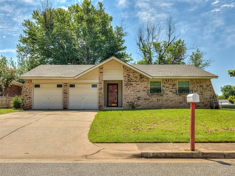 Located just minutes from Downtown Edmond and Broadway Avenue you have convenient access to all this lovely city has to offer. Nestled on a corner lot in Meadow Lakes you will find this well maintained 3-bedroom, 2-bathroom home. Front entry opens to the large living room with tall ceilings and an abundance of natural light. Just off the living room are the dining area and kitchen with ample cabinet and counter space, a window sits above the kitchen sink offering a view of the spacious backyard. To the right of the front entry are the 2 secondary bedrooms, hall bathroom with tiled tub/shower combination and primary suite featuring an en-suite bathroom with walk-in shower. The utility space is conveniently located off the kitchen with access to the 2-car garage. The large backyard with covered patio and storage shed is the perfect host to gathering family and friends, playing with the kids, or fetch with the dog. This amazing home is ready to be the backdrop for a new family to make long lasting memories for years to come.