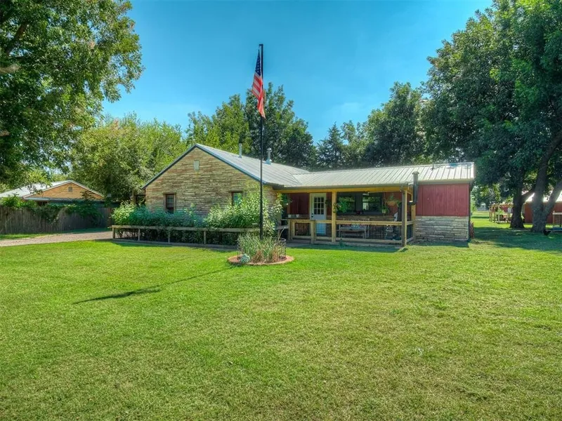 A Homestead Dream—a completely updated property offering modern comfort with endless country charm near Tinker. Both homes on the property have been beautifully renovated from top to bottom, making this the perfect move-in-ready retreat. The main home (3 bed, 2 bath) features a new metal roof (2024), along with new electrical and plumbing 2023) for peace of mind. Inside, you’ll also find an indoor hidden safe room/storm shelter for added security. Enjoy your very own backyard orchard with 14 fruit trees (peach, pear, plum, apple, apricot, and cherry) along with 6 mature pecan trees. Enjoy the evening on your large covered patios year-round. A greenhouse, fenced garden (2x), chicken coop, and garden shed make this a gardener’s and homesteader’s paradise. The property also includes a 30'x40' insulated shop with plumbing and electrical, perfect for hobbies, storage, or a business because it has its own separate entrance. For added versatility, the 500 sqft guest house is complete with its own kitchen and bathroom offers excellent rental income potential, guest space, or multi-generational living. Sold with the refrigerator, washer, and dryer included.