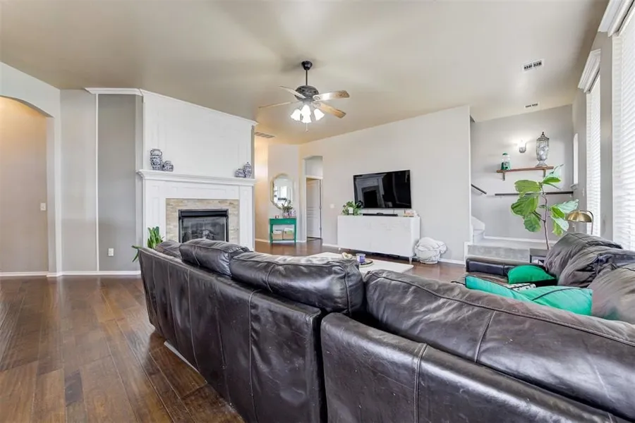 Brand new roof! This beautiful 4-bedroom, 3-bath home in Edmond perfectly combines style, comfort, and an unbeatable location. Nestled on a spacious corner lot with a peaceful pond view, this home welcomes you with an abundance of natural light streaming through large windows that highlight its open and inviting layout. The living room features a cozy fireplace, creating a warm centerpiece for gatherings, while the chef’s kitchen impresses with granite countertops, a generous pantry, and ample counter and cabinet space — perfect for cooking and entertaining.