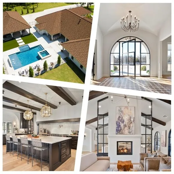 Welcome to this magnificent Spanish Revival estate nestled on 5 acres of pristine wooded land in Edmond Schools. This property seamlessly blends the elegance of Spanish architecture with modern luxury amenities. As you step inside, you'll be captivated by the expansive living room featuring a double-sided fireplace that opens to a cozy lounge area, creating a warm and inviting atmosphere for the entire family. The kitchen is a culinary dream come true, boasting a remarkable 60-inch commercial stove and a large central island, perfect for casual dining. The main residence offers 5 ensuite bedrooms, ensuring privacy and comfort for all family members. Additionally, a separate 763-square-foot guest home with its own bedroom, living area, and kitchenette is perfect for visitors or as a retreat space. This is included in the square footage. The grand groin ceiling in the entryway and the ente...