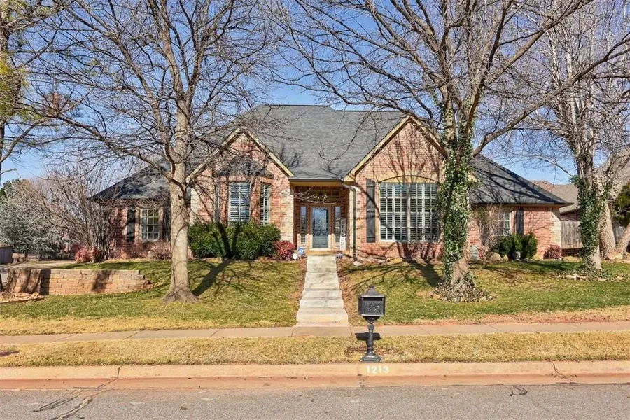 Situated on a prime corner lot in Edmond's highly desirable OakTree Park neighborhood, this beautifully maintained home is designed to impress. Summer days are meant to be spent poolside, and this backyard delivers with a newly renovated, heated saltwater pool with hot tub. Featuring new plaster, new tile, new high-efficiency pump, and WiFi-enabled controls, that's $60,000 in recent upgrades! The backyard oasis also includes a fire pit, outdoor fireplace, pergola, and shed (equipped with electricity) for all your outdoor living needs. Inside, the single-story layout offers four spacious bedrooms, a formal dining room, and a generously sized office-providing flexibility for both everyday living and entertaining. Timeless architectural details shine throughout, including rich woodwork and casing, wood-pane windows, and elegant crown molding that add warmth and character. A storm shelter located is in the garage and the laundry room comes complete with its own sink. Natural light pours in through expansive windows, framing peaceful views of established trees and lush landscaping, all supported by a full sprinkler system. Additional peace of mind comes with a roof replaced in 2021, complete with full guttering with leaf guards! This home offers the perfect balance of space, comfort, and outdoor enjoyment, all within a community that features a clubhouse, pool, tennis/pickleball court, and two neighborhood parks. And for even more outdoor adventure, Mitch Park is just moments away. Additional updates to the home include a newer water heater, all new decor switches and outlets, fresh paint on walls and cabinets, and new garage door opener. Seller's offering $5,000 flooring allowance to allow buyer their preferred selection.