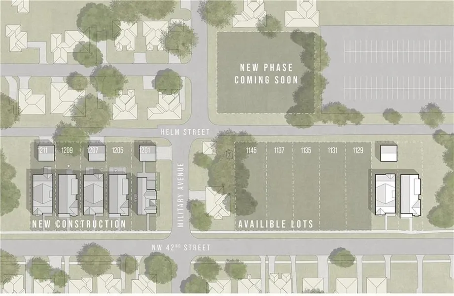 attached to the garage which makes for many options of use as a secondary income unit, office or in-law suite all with its own rear entrance and parking. We have several floor plans that accommodate the modern living styles. This lot is waiting for you to build your custom home, so don’t wait around and miss the opportunity to live in new construction in the heart of OKC and walking distance to Western Ave Dining, Shops, Coffee and Drinks. Make Helm Farm + 42nd the place you call Home!