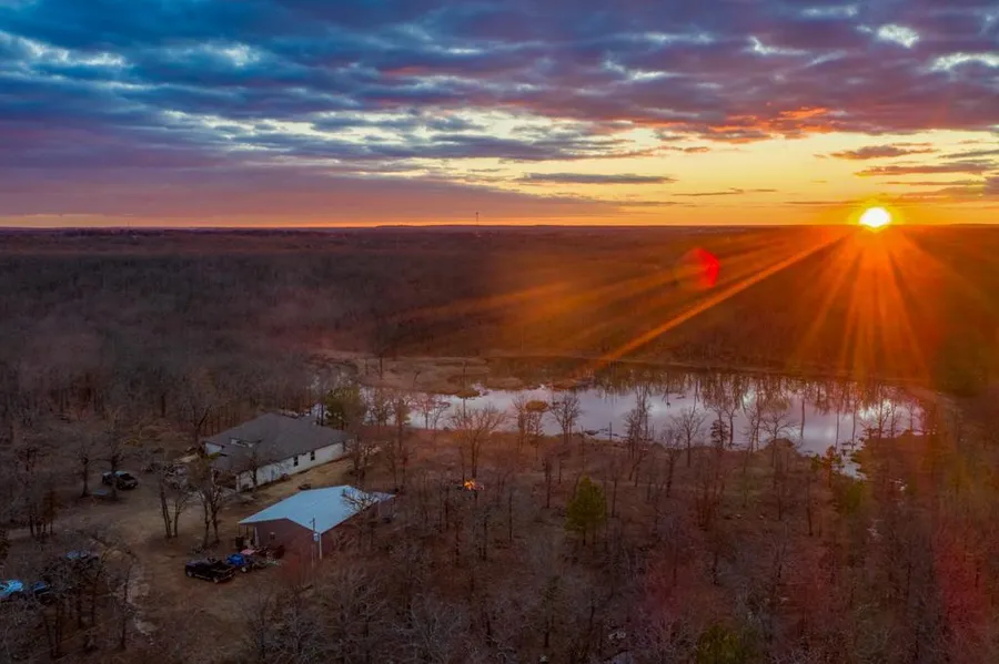 Located in Beggs, Oklahoma, just 15 minutes south of Tulsa Hills, sits a beautiful home on 15 +/- acres overlooking a magnificent 4.5-acre spring-fed, stocked lake. This property is located less than one mile east of Highway 75 off of 251st Street and is accessed down a private, gated drive shared with the neighbors. You would be hard pressed to find such a peaceful and tranquil setting with all the modern luxuries, yet tucked away from the hustle and bustle of city life.