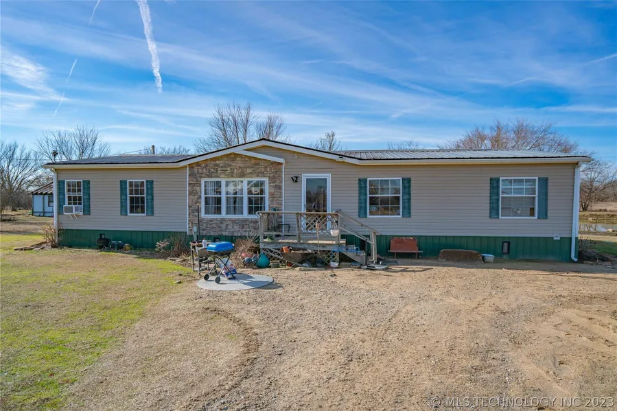 80 acres open and treed pasture. Completely fenced with 3 ponds. Features a 1920 sq ft 2013 manufactured, 4 bd 2 bath home. Large open living room which opens to kitchen, large island and dining area with gas fireplace. There are two other homes that are currently being used for storage. One is 2002 singlewide mobile home, the other is rock sided log cabin built in 1968. There are several out buildings and an old shop building. Free natural gas service on this property. Raise cattle, horses, or pasture. Plenty of wildlife, with some nice deer. Three ponds one stocked with fish. Owner states His son caught 5 lb Bass, and 7 LB Catfish. Lots of opportunities with this property.