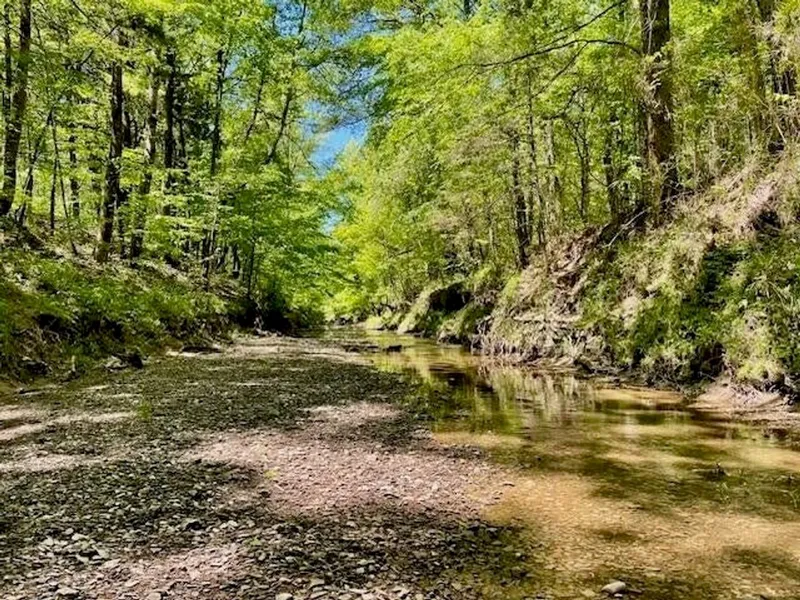 An adjoining row crop farm to the north enhances the already excellent deer and turkey hunting. A small slough near the northwest corner flows into the creek and could easily be developed into a duck hole or private pond. Six Mile Creek is typically walkable, with crystal-clear poolsideal for adventures with the kids or grandkids.