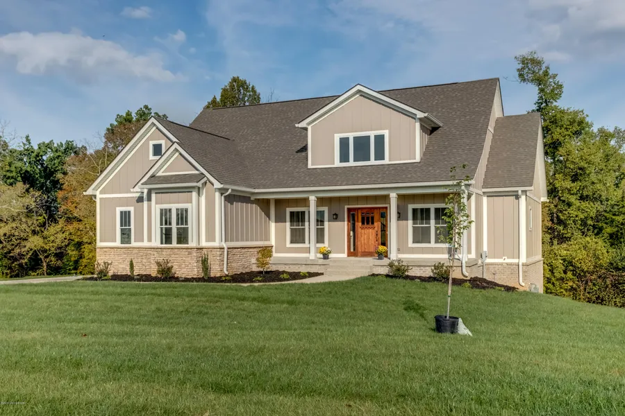 Outstanding new home in Oldham County on over one-acre lot with wooded privacy. You will feel and see nothing but quality throughout as if it were built just for you! Open floorplan with all essentials on main level with full unfinished basement plumbed and framed for additional space. Great room with fireplace and built ins, wood and tile flooring throughout main level. Beautiful eat in kitchen overlooking deck and woods has stainless steel GE appliances, granite and Negresco countertops and 42'' cabinets. Master bath has soaking tub and separate tiled shower, double vanities and walk in closet. Laundry on main with mud room and 1/2 bath off 2 car garage. Three more bedrooms with two full baths on upper level, perfect guest or in law suite along with additional space for another bedroom if needed. Walk out unfinished basement with deck is framed and plumbed for rec room, bedroom and bat...