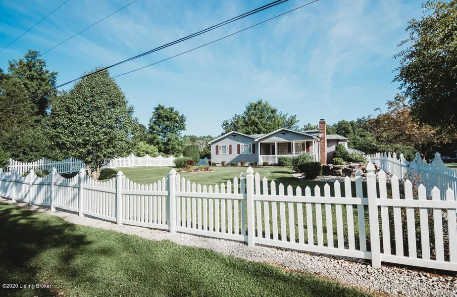 Newly renovated Ranch with 6 car garage that sits on 2-1/2 acres in desirable Oldham Co. Once you walk up to the front door you will hear the waterfall from the custom built Koi pond. The home has fresh paint and carpet throughout whole house. Features 1450 sq ft, 3 beds and 1 full bath. A large kitchen with cherry cabinetry where all appliances stay. Off of the kitchen is large pantry and laundry room. Down the hall you will find the remodeled bathroom with new features, tub, and tile-work. The 3 bedrooms offer plenty of space and large closets with shelves. The back of the house is where you will find the huge 6 car garage to keep all the toys you will need. Nicely manicured 2.5 acres with a barn at the end of the property.