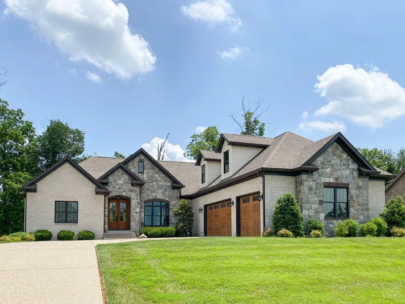 This gorgeous home in Poplar Woods was completed in 2019 and features an open floor plan with custom details throughout. It sits beautifully on a private wooded walkout lot with plenty of natural light. The main floor features engineered hardwood flooring throughout. The great room, dining area and eat-in kitchen are all adjoining, allowing plenty of space for family gatherings. The custom kitchen has white cabinetry and honed quartz countertops. The built-in bench seat and large island gives you plenty of eating space. There is a lovely deck off of the kitchen (great spot for dining or grilling). The master suite has access to a private rear deck. On the opposite side of the master, you'll find 2 guest bedrooms adjoined by a Jack and Jill bath. The powder room, laundry room and plenty of cabinet storage space complete the main floor. As a bonus, you will find a sitting area, bedroom and full bath upstairs. The finished lower level walkout has an abundance of windows in the large family room, entertainment room, bedroom and full bath. There is plenty of storage space and a lower level patio as well. Other features include a 3 car garage, security system and irrigation. Schedule your private showing today!