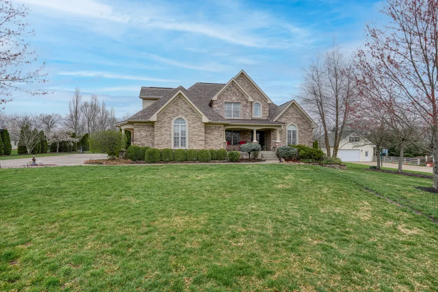 The current owners have transformed this ordinary home into an extraordinary residence! You get a glimpse of this the minute you pull up to the house. The facade of the house now includes a beautifully designed porch with metal roof, columns and beautiful stonework. The first floor has a welcoming open floor plan design that receives an abundance of natural light through a wall of windows that also frame a stunning stone surround gas fireplace. This family room is open to the remodeled kitchen that has beautiful custom wood cabinetry, granite countertops, an island with seating and an eat in area that comfortably fits a table for six. The formal dining room is complete with traditional moldings. Yes, the primary bedroom and bath are conveniently located on the 1st floor. You will enjoy the spacious and luxurious bedroom and bath. The bedroom with its vaulted ceiling and fan and the updated bath has light wood cabinetry with black accent hardware, double sinks with granite counter tops, marble design tile and glass shower, whirlpool tub, a water closet and a walk-in clothes closet. WOW! Also, on the first floor is a half bath, laundry room, beautiful wood floors and a delightful screened in porch off the kitchen. The open stairway leads to the second floor where there are 3 spacious bedrooms all with walk-in closets, wood floors and a centrally located full bath. The lower level with daylight windows is a home within a home. The second family room easily accommodates a large sectional for abundant seating options. The entertaining area of the room has a wet bar with built in cabinetry and shelving, refrigerator and island with bar seating. There is also a gym room, a multi-purpose room (currently used as a bedroom), and an updated full bath. Another WOW! Last but not least is the back yard oasis. It is the grand dame of outdoor living space that your family and friends will enjoy for months out of the year. There is a large saltwater in-ground pool w/gas heater, hard scape and landscaping around the pool, two soaring pergolas, a pavilion with an outdoor stone fireplace all encompassed in a private fenced yard that backs up to a farm. This magnificent property is close to The Aquatic Center, Oldham County Country Club and award-winning Oldham schools. Too many upgrades and improvements to list here so a separate detailed list has been included for your convenience.