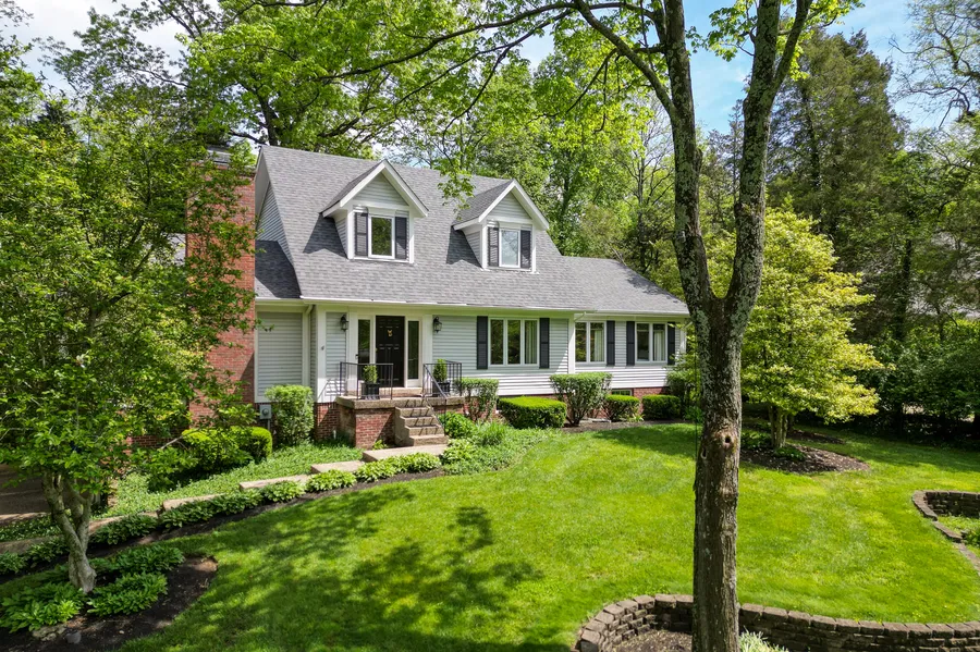 Step into the doorway of your dream home, nestled within the award-winning Oldham County school district. This enchanting 3-bedroom, 2.5-bathroom cape cod-style residence rests gracefully on a picturesque, wooded one-acre lot, enveloped by meticulous landscaping. Upon entry, a grand two-story foyer sets the tone, leading to a spacious, vaulted great room adorned with rich dark hardwood flooring and a cozy gas fireplace. Adjacent, a charming den with hardwood floors provides tranquil views of the surrounding woodlands through its triple window. Designed with entertaining in mind, the circular floorplan flows seamlessly into recently remodeled kitchen and large eat-in area, which offers quartz countertops, stainless appliances, and an abundance of cabinetry. The first-floor primary suite is generously sized, featuring a private bathroom with dual sinks, a walk-in closet, and a soothing whirlpool tub. Upstairs, two additional bedrooms are serviced by a full bathroom. The lower level boasts a versatile recreation room, a potential 4th bedroom with closet, and an unfinished area with workbenches and ample storage, all conveniently accessible from the 2-car garage. The expansive backyard serves as a private oasis, offering two distinct outdoor entertaining spaces perfect for hosting gatherings or simply enjoying the picturesque surroundings. Located in the sought-after Briar Hill Estates, 7603 Cambridge Drive epitomizes modern comfort and convenience.