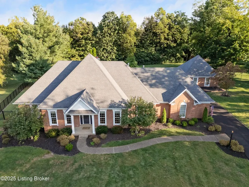 A first floor primary located away from the rest of the living area provides privacy. The primary bath was just updated with an oversized walk-in shower. Upstairs are three oversized bedrooms with another full bath and lots of storage and closet space. The finished lower level provides a whole new living area perfect for large family get-togethers teenagers wanting their own space or generational family living. The beautiful curb appeal of this design grabs your attention from the moment you drive by. Sitting on a one acre lot with an inground heated pool with newer liner and equipment, a hot tub on your covered porch for relaxing in the evening and the beautiful privacy of the densely treed grounds, enclosed with maintenance for a black aluminum fencing just take your breath away. In addition to all this property offers, there is an additional detached two car garage (or possibly could be Pool house your choice) this was freshly drywall with wonderful LED lights and new quiet openers. The home also has had a tankless water heater installed along with fresh landscaping, new exterior lamp post and all of this is tucked away in a cul-de-sac off of beautiful Ash Avenue in Pewee Valley.