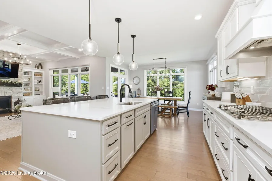 Welcome to Sanctuary Falls, where timeless elegance meets modern comfort. This nearly new, one-year-old residence offers the perfect balance of thoughtful design, upscale finishes, and everyday convenience-just a short golf cart ride from the vibrant amenities of Norton Commons, and the benefit of Oldham County Schools. Designed for both comfort and sophistication, this exquisite home features five spacious bedrooms and four-and-a-half luxurious baths, 3 car garage, including a serene primary suite where every detail exudes relaxation and style. At the heart of the home, the open-concept great room makes a stunning statement with its dramatic floor-to-ceiling stone fireplace, elegant coffered ceilings, custom built-in shelving, and upgraded flooring that flows seamlessly throughout the main and lower levels. The gourmet eat-in kitchen is a true showpiece, showcasing upgraded quartz countertops, high-end stainless-steel appliances, a custom wood range hood, designer lighting, and a spacious walk-in pantry. Additional transom-topped windows bathe the space in natural light, creating an inviting atmosphere perfect for both everyday living and entertaining. Just off the kitchen, step outside to an oversized, partially covered porch and an expansive newly built deck, ideal for peaceful mornings, al fresco dining, or hosting gatherings surrounded by the natural beauty of your tree-lined backyard. The main level also features a dedicated home office, a spacious laundry room, and a convenient mud room with built in cubbies, offering both function and flexibility. The finished lower level expands your living space with a generous family room, a fifth bedroom, a full bath, and abundant storageall crafted with the same attention to detail and quality found throughout the home. Thoughtful upgrades elevate this property even further, including epoxy-coated garage floors, extended driveway, wiring present for a car charging station, and custom automated blinds. Situated on a premium lot backing to mature trees, this home offers both privacy and picturesque views. Don't miss this truly special home! If you're seeking the perfect blend of luxury, comfort, and convenience, this exceptional home in Sanctuary Falls is designed to elevate every moment of your day.