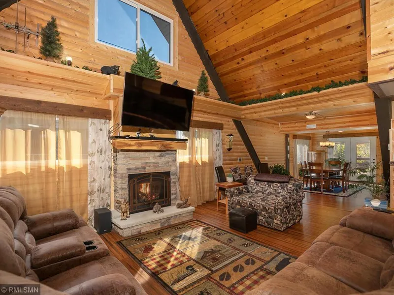STUNNING chalet-log cabin style home remodeled to perfection! You will fall in love with this 3 bedroom, 2 bath A-frame home with bamboo floors and log walls. An open floor plan with a 22-foot vaulted ceiling featuring bamboo flooring, log walls, a Mendota gas fireplace and a live edge bar. The kitchen features new appliances, a large walk-in pantry and a large island with seating. The dining room walks out to the 24x24 - 2 level deck, with firepit and seating. A main floor bath includes a whirlpool tub and large walk in shower, with access to the master bedroom. On the second floor enjoy the expansive family room, which looks over the main floor, as a recreational space, or even another bedroom. This home is a must see!