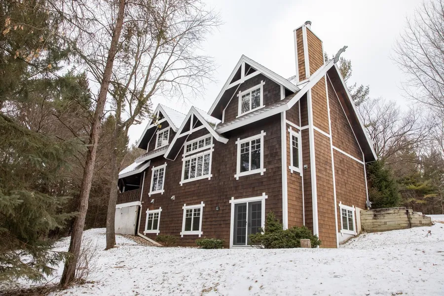 Unveil your dream home, blending efficient luxury and unparalleled character! This one-of-a-kind custom-built residence, crafted by its original owner, is inspired by the timeless elegance of Medieval Scandinavian architecture, reminiscent of the stunning Norwegian stave churches. Constructed to stand the test of time, the home features a robust 12-inch-thick concrete foundation that supports massive timber beams and Structure Insulated Panels (SIPs). The roof, installed in 2017, boasts Class 4 Malarkey Impact resistant shingles with a transferable warranty, ensuring durability and peace of mind. Step inside to marvel at the hand-carved joinery and exquisite Norwegian art by Phil Holtegaard, adding unique charm to the timber-framed structure. The efficient geothermal system, replaced in 2017, guarantees eco-friendly living, while the newly updated kitchen showcases new appliances, counte...