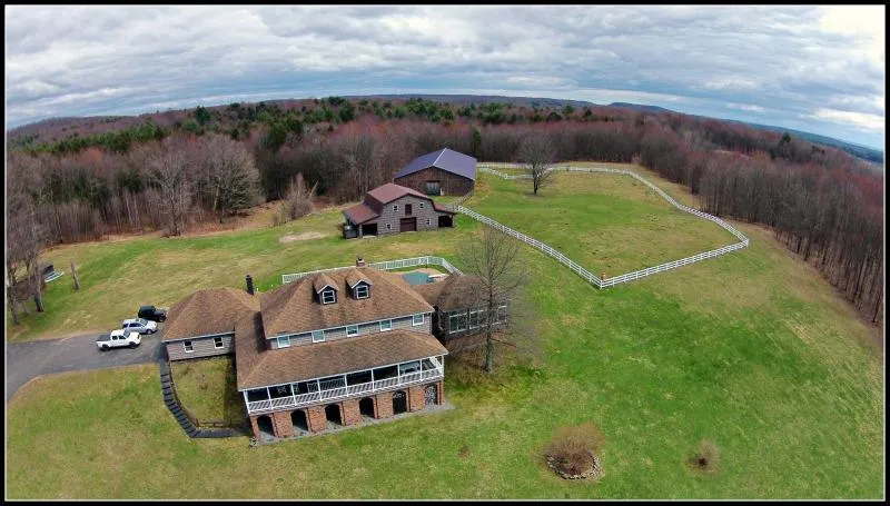 Undeniable breathtaking approach as you enter the well maintained grounds featuring a large family compound including 5,500 square foot contemporary home sitting on top of the ridge overlooking the rolling, country hillsides and surrounded by horse pastures lined with fences.